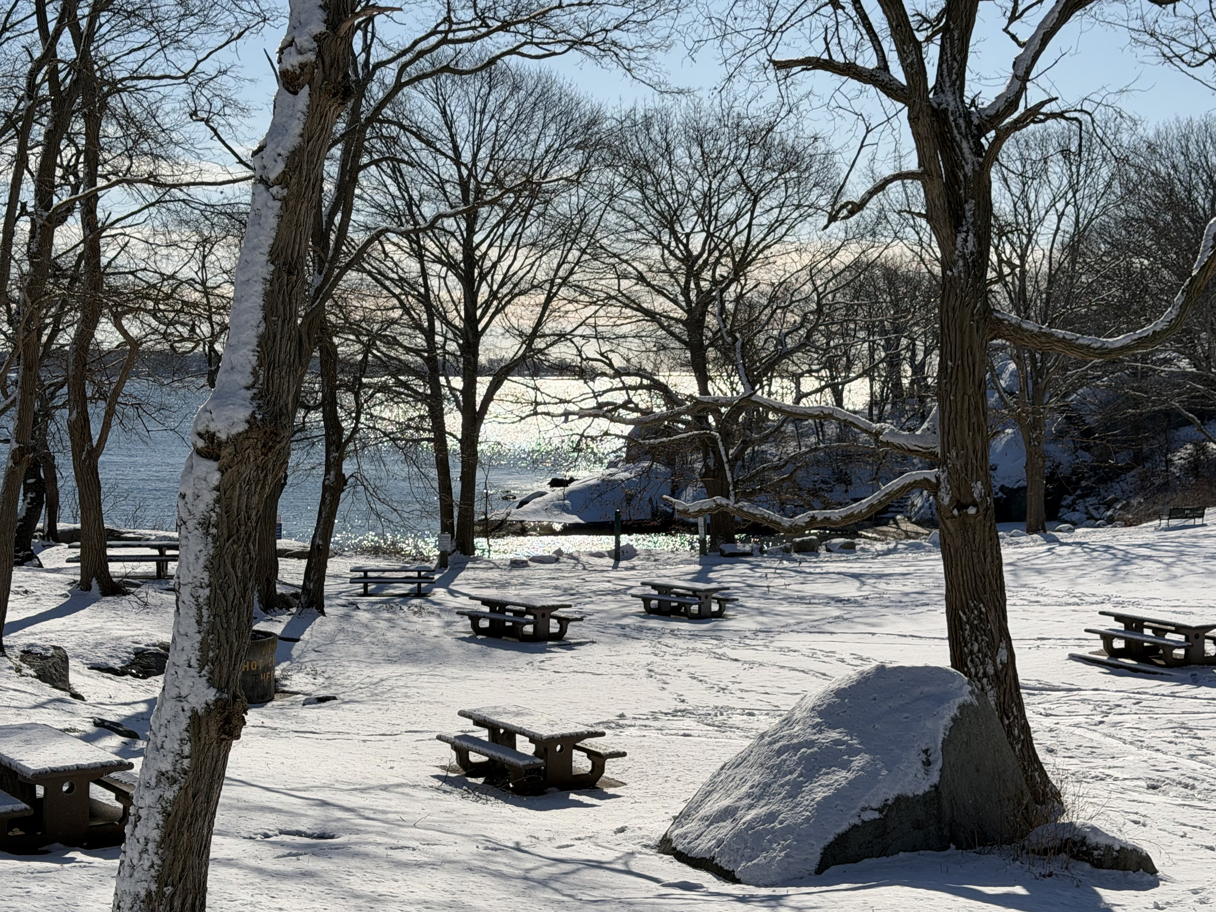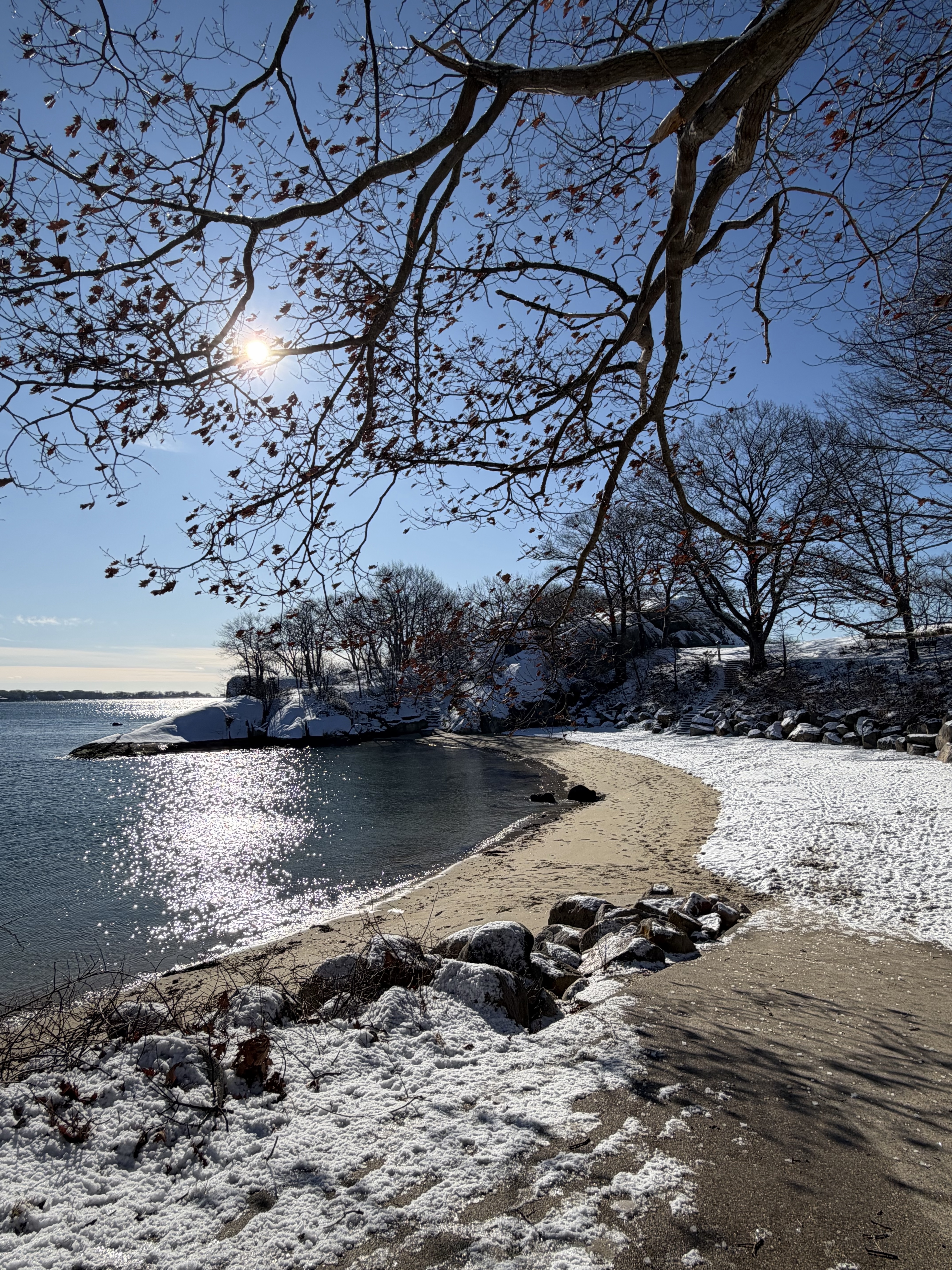 I took a little walk around Stage Fort Park following the recent snowfall. Naturally I had to swing down to Half Moon Beach which is my very favorite. You could almost hear the summer laughter rising and falling with the gentle winter waves.