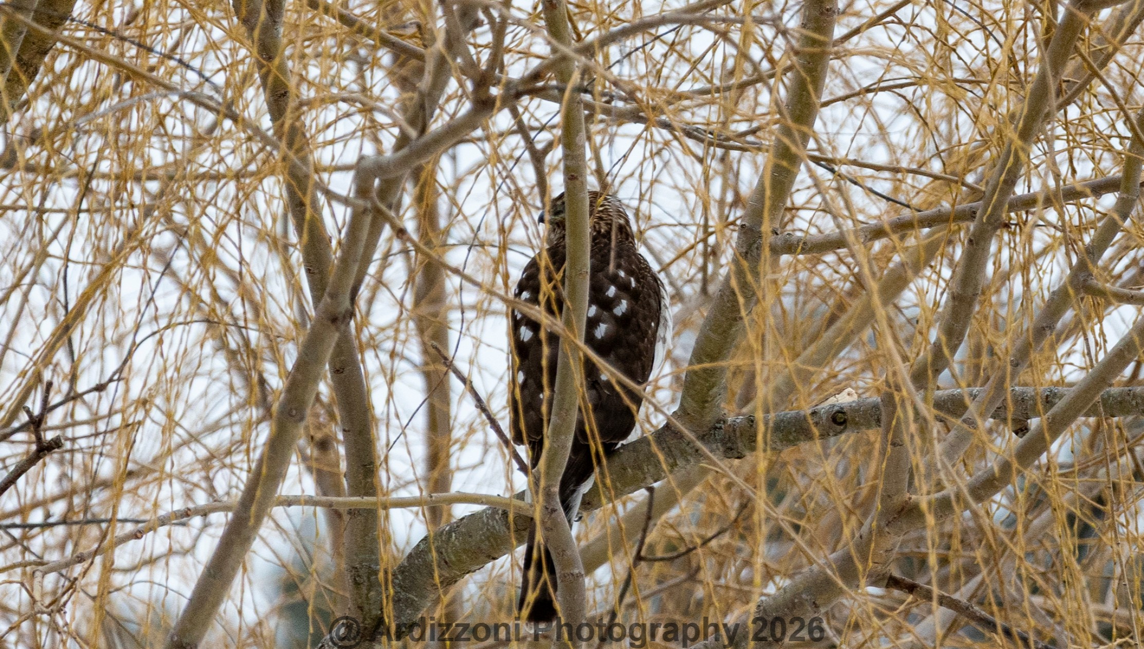 On Tuesday, I was on Concord Street near the marsh.ย The sound of panicky chickens piqued my curiosity.ย There was a protected chicken coop below this beautiful bird.ย The chickens were ok, but they were nervous.