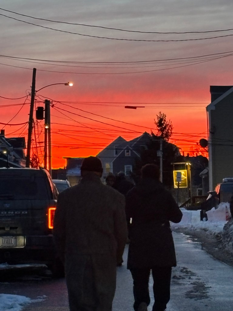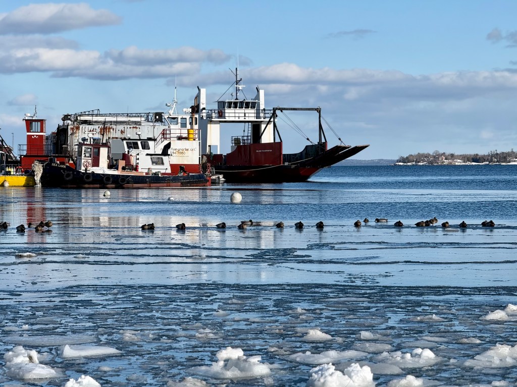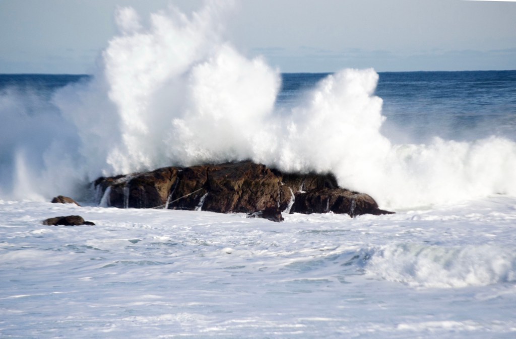 The snowfall started on January 25th, and our path to the rocks quickly turned white.It didn’t bother the coyotes who continued to follow their daily routines.The brunt of the storm passed offshore, so the waves were modest.Our restaurant was increasingly popular with the birds, as it got colder.We never closed, but reverted to taking reservations.Walking in deep snow after the storm was difficult, so the turkeys took to the trees, and the sunshine.The berry eaters did fine with the winter weather.This flock of Cedar Waxwings had a substantial food source.As did the wintering flock of American Robins. No worms until spring.A pair of coyotes joined us on the weekend for brunch. This may be a male?And a female? After all, it’s mating season. Everyone looks healthy this year – no mange.We added several more inches of “ocean effect” snow during the next storm, which was further offshore.The deer appear unfazed. Here, peering between the rails of a wood fence.Forget Groundhog Day! Our ‘spring marker’ is when the sun again sets north (right) of the lighthouse tower.