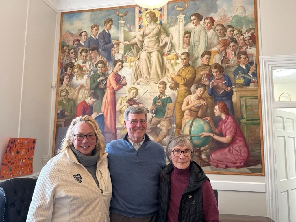 Mayor Paul Lundberg was joined by Kimberly Brusseau and Beverly Cadigan of New Gloucester, Maine, at his office at Gloucester City Hall. Ms. Brusseau and Ms. Cadigan visited on behalf of the community of New Gloucester, whose residents organized a fundraising effort after learning about the devastating loss of the Gloucester fishing vessel Lily Jean earlier this year.