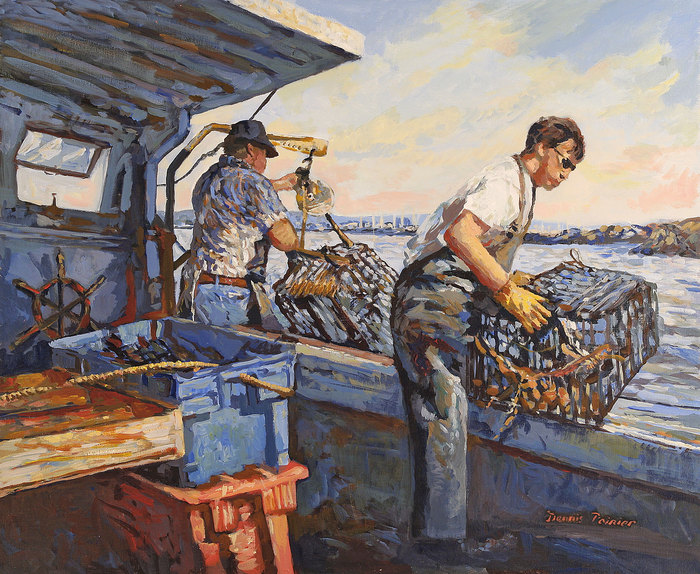 Dennis Poirier grew up in Gloucester, Massachusetts. The colors, sights, and sounds of the busy port and fishing fleet inspired Dennis. His earliest memory is of his father drawing his portrait. Dennis says his parents always supported his art and that gave him confidence.