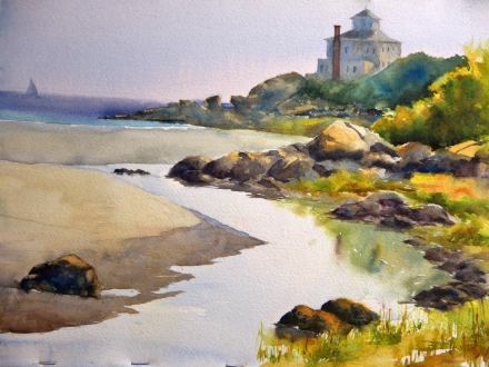 Spot Color Painting was the assignment. Spot color painting is where you pick a color and relate that color to the rest of the painting. Debbie began by giving a spot color demonstration. Tom picked a scene outside one of Deb’s windows, Liz picked a hanging candle lamp and I picked a high shelf with three colored wine glasses and two silver pictures. Deb’s Knowledge of art, painting and color instincts are very inspiriring. The two hours flew by. I can’t wait for next week! Anyone whoever has thought about taking up painting should give it try. Twentyfive dollars is a great deal for the infomation you receive.