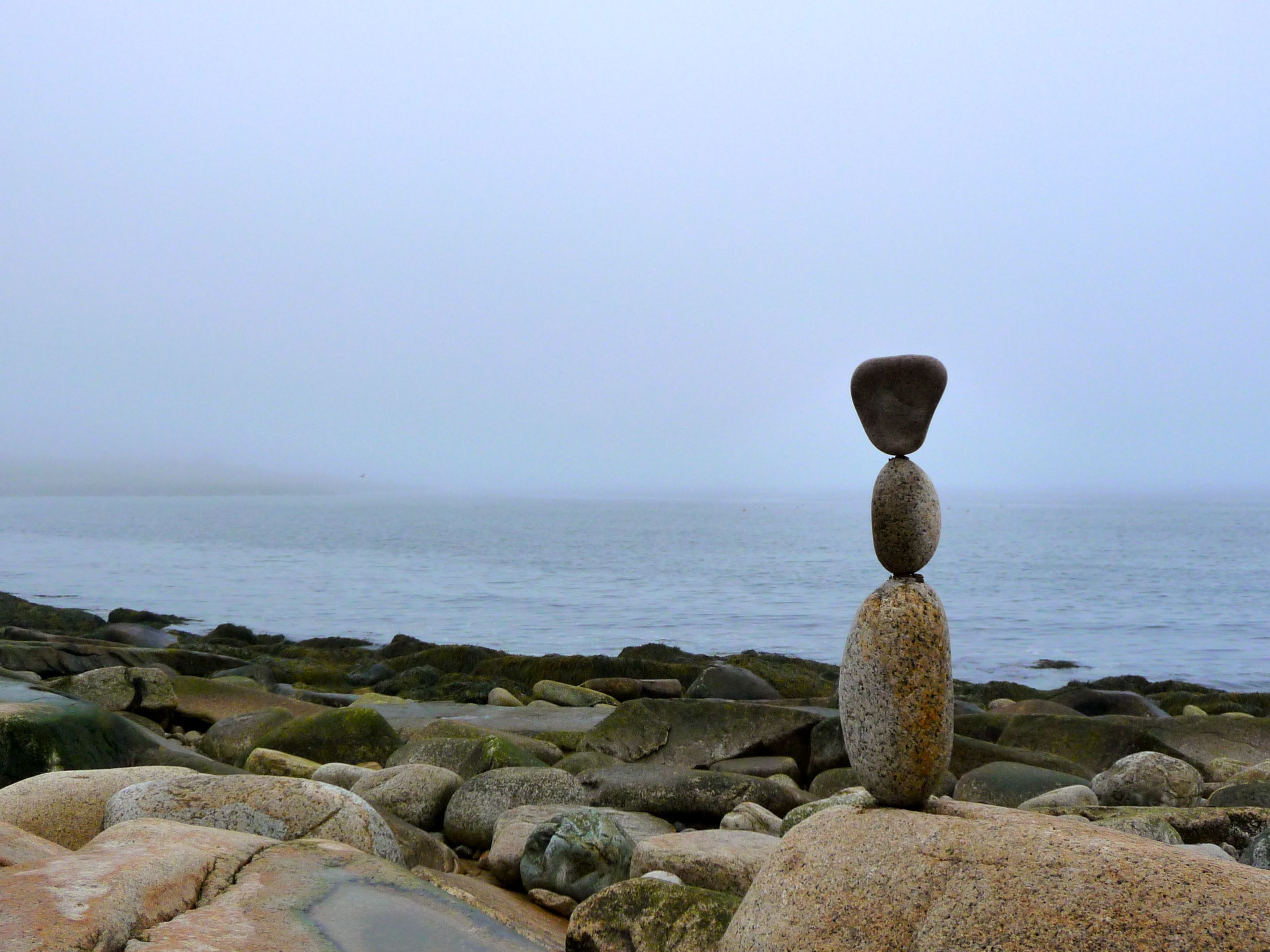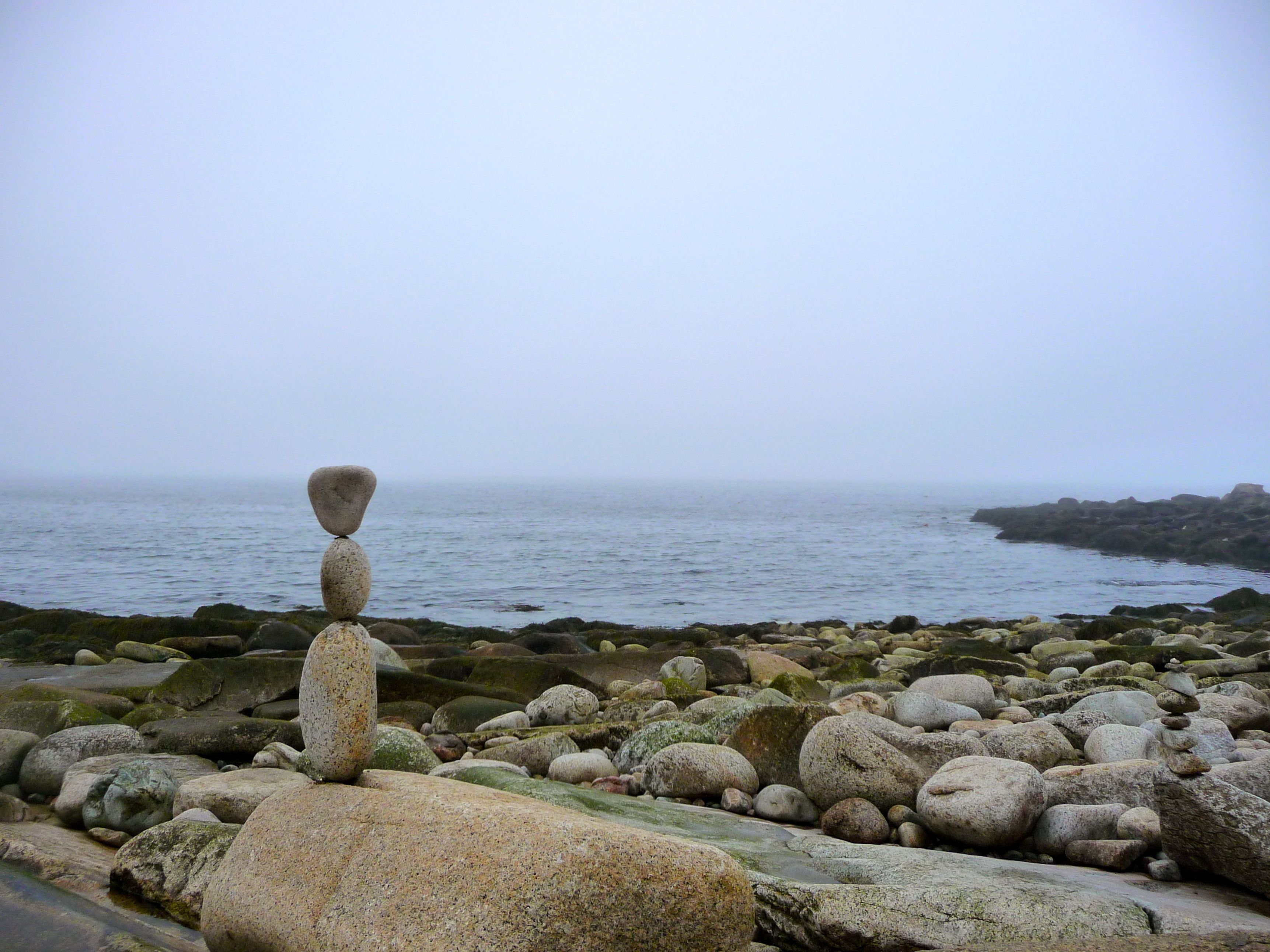 Joey posted Halibut2 round rock balancing and a youtube of rock balancer Bill Dan (who looks like he does his work in the shadow of the Golden Gate Bridge). I noticed a dry mortar technique that Dan was using and had an ah ha moment. I’ve been going for square sturdy construction and height but with a little dry pebble added one might go crazy.