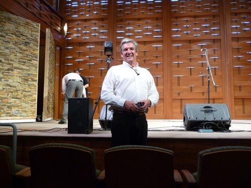 OK, so this is me being a jackass right before the start of the concert. You can see how the side doors open to get the piano, or chairs. You can also see the weaved shutter which covers the huge window backstage.