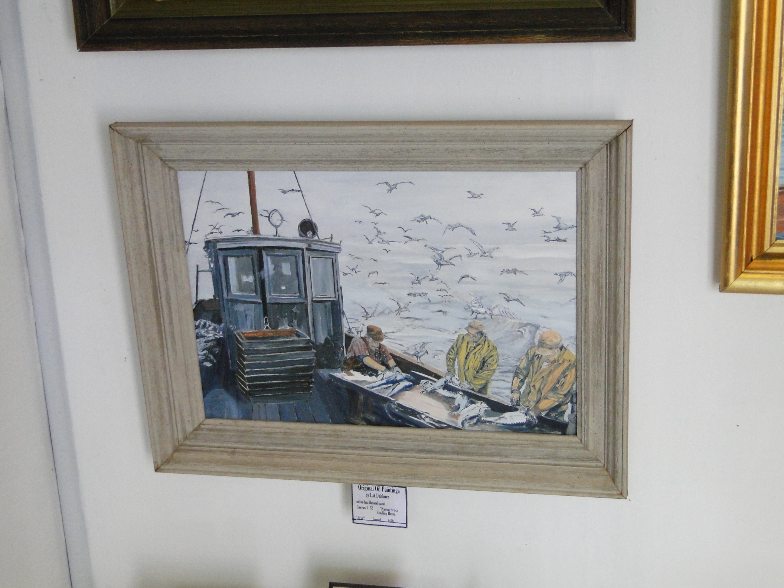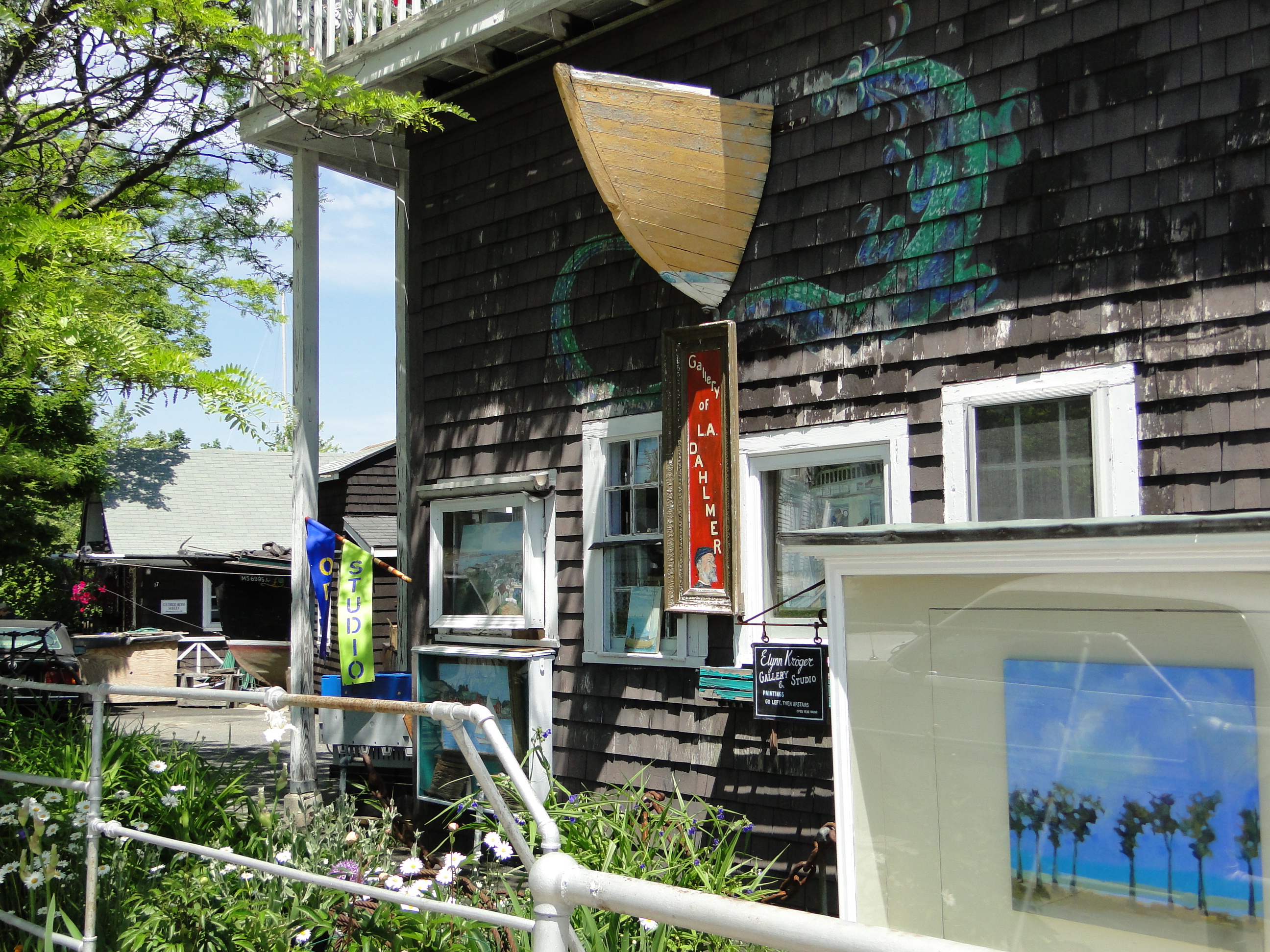 His Gallery is one of the must see places on Cape Ann. Larry’s Gallery is the first one on your Right as soon as you pass the parking lot, you can’t miss it. There is a Bow of a boat sticking out of the front of his Gallery right over the sidewalk.