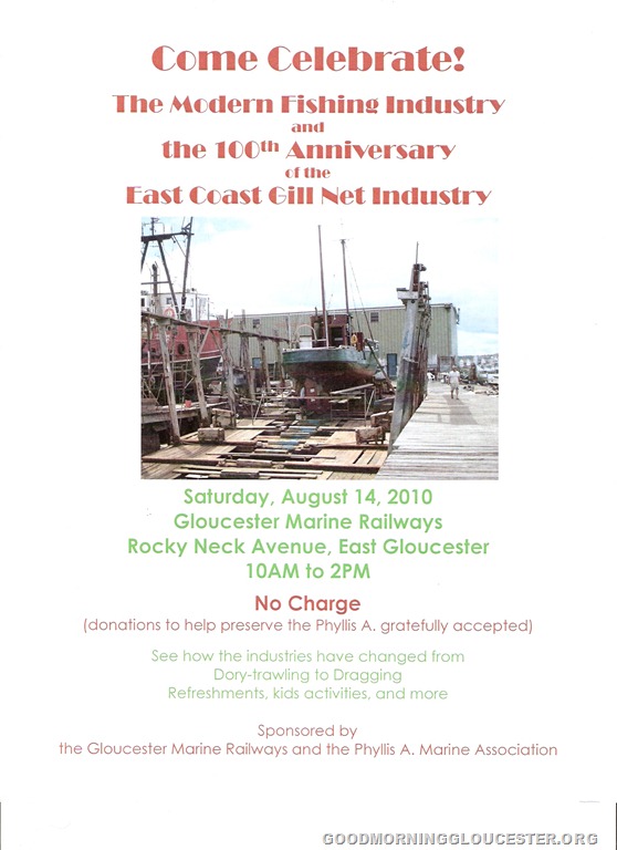On Saturday, August 14th from 10AM to 2PM at the Gloucester Marine Railways, Rocky Neck, we are celebrating the 100th anniversary of a group of fishermen from Charleviox, Michigan bringing gill net fishing to Gloucester and the whole East Coast.