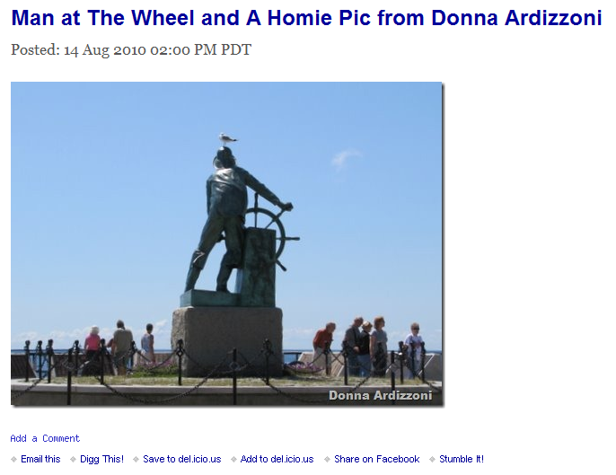 Anyway, back on track. What you get when you subscribe as I said before is an aggregation of the daily posts which is done by a service called feedburner. Feedburner collects the information that all our contributors post up til about 8PM and then creates a sort of newsletter email which the subscribers usually receive around 8:30PM from what I can tell. It is a very condensed version containing the pictures and text. It does not have any of the features that the blog has in the sidebar like the running comments, the blogroll, the search box,the Gloucester Music Schedule, The Flickr Picture Feed, the calendar or the live count of how many people are on the site at any given time. The subscription feed also does not contain any of the contact buttons or tabs along the header of the blog. I think that for many folks getting the nightly feed is just fine and I’m very happy that folks get GMG in what ever way they can. I just want to make sure that people know that the blog is constantly changing throughout the day and checking in by bookmarking the link gives you a bunch of extra options for ways to explore and enjoy the blog. Ideally everyone would subscribe and also check back in throughout the day and comment on stories they like. that IMO is best case scenario for someone who really wants to get the most out of GMG.