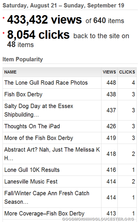 GMG Inside the Numbers Views August 21-September 19th 433,432 Views