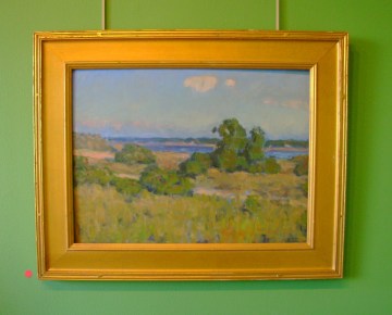 Yes, we do have an arts scene. While we love our artistic heritage (William Lester Stevens, Aldro Hibbard…I could go on and on), many people don’t realize that a vibrant community of artists is based here still. Now. In the 21st century. And to underscore the point that Rockport’s appeal for artists hasn’t waned, our village is playing host to one of Cape Ann’s best for the entire month of December: Eugene Quinn. His paintings are both timeless and contemporary, featuring subject matter that doesn’t seem entirely locked in any place or time. A few summers ago in Rocky Neck I bought one of his small studies of Back Beach in Rockport and I often myself taking a moment to stare at it as I go through the mundane tasks of the day (it hangs near our dining room table). Even without being a finished painting, it so completely captures the quality of the early morning light (the sun hitting the clock tower of the Old Sloop Church) that for a minute I am someplace else entirely, pulled away from feeding time and all the mess associated with giving pre-schoolers their breakfast. This fact alone makes the Eugene Quinn painting I have very near and dear to my heart. Better than a pharmaceutical. Now if only artists were compensated as well as drug companies, the world would be a better place.