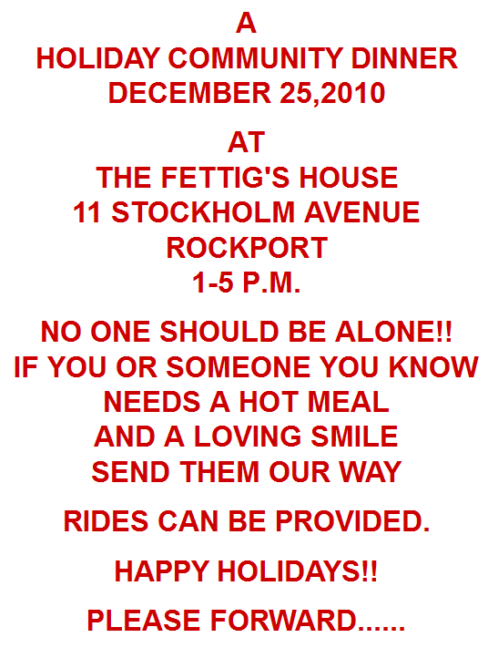 HOLIDAY COMMUNITY DINNER DECEMBER 25, 2010 AT THE FETTIG’S HOUSE