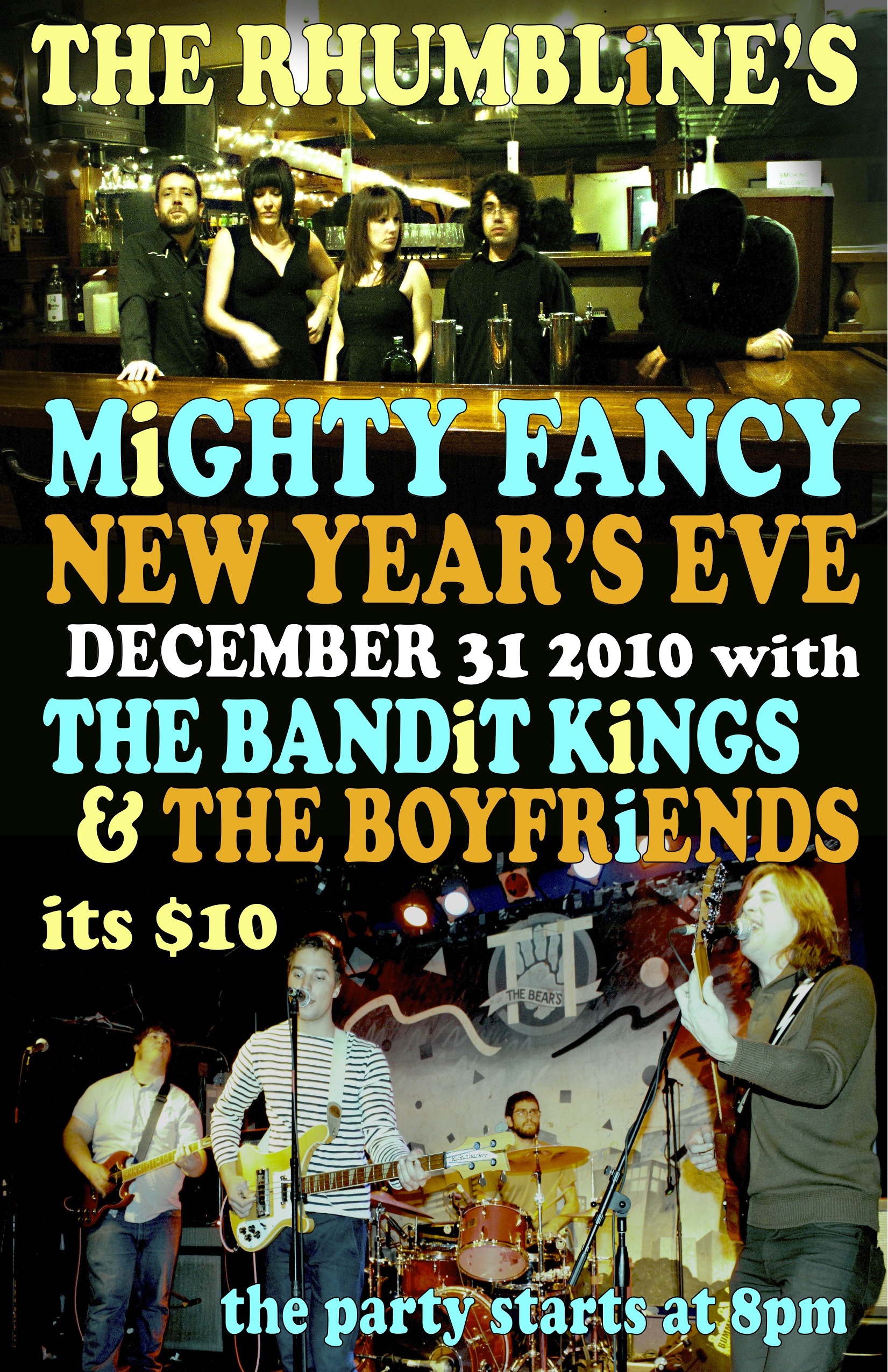 | More Info | Dress up and get down at the Rhumbline’s 2010 MIGHTY FANCY New Year’s Eve Party!Hosted by The Bandit Kings & The Boyfriends With MIGHTY FANCY drink specials; MIGHTY FANCY special guests —including mighty fancy Rhumb Line bartenders & mighty fancy guest musicians (paging Mr. O’Conner?)—and MIGHTY FANCY door prizes! It is going to be MIGHTY FANCY, but of course you don’t have to dress up unless you want to. December 31, 2010. 41 Railroad Ave • Gloucester, MA • 21+ |