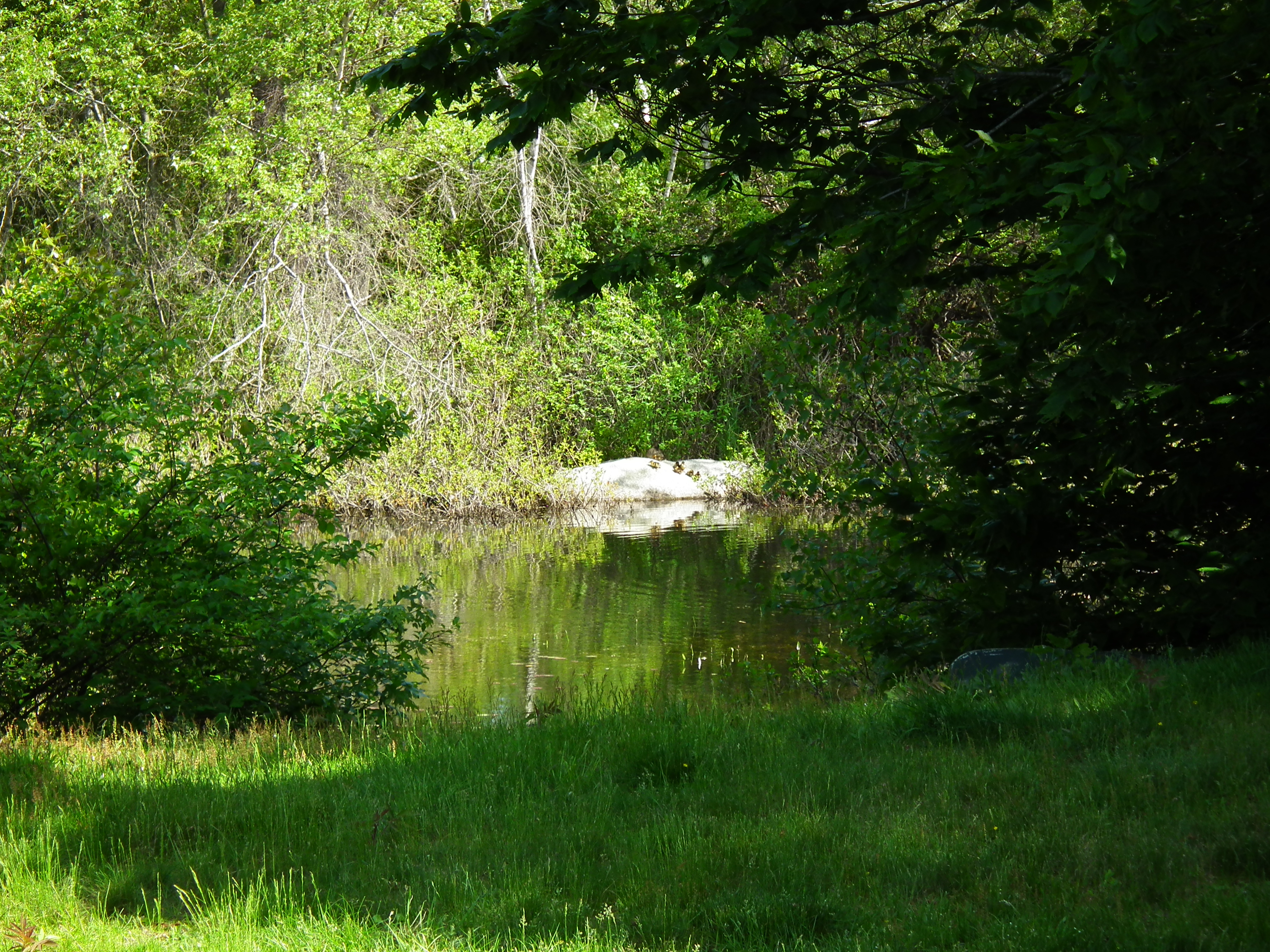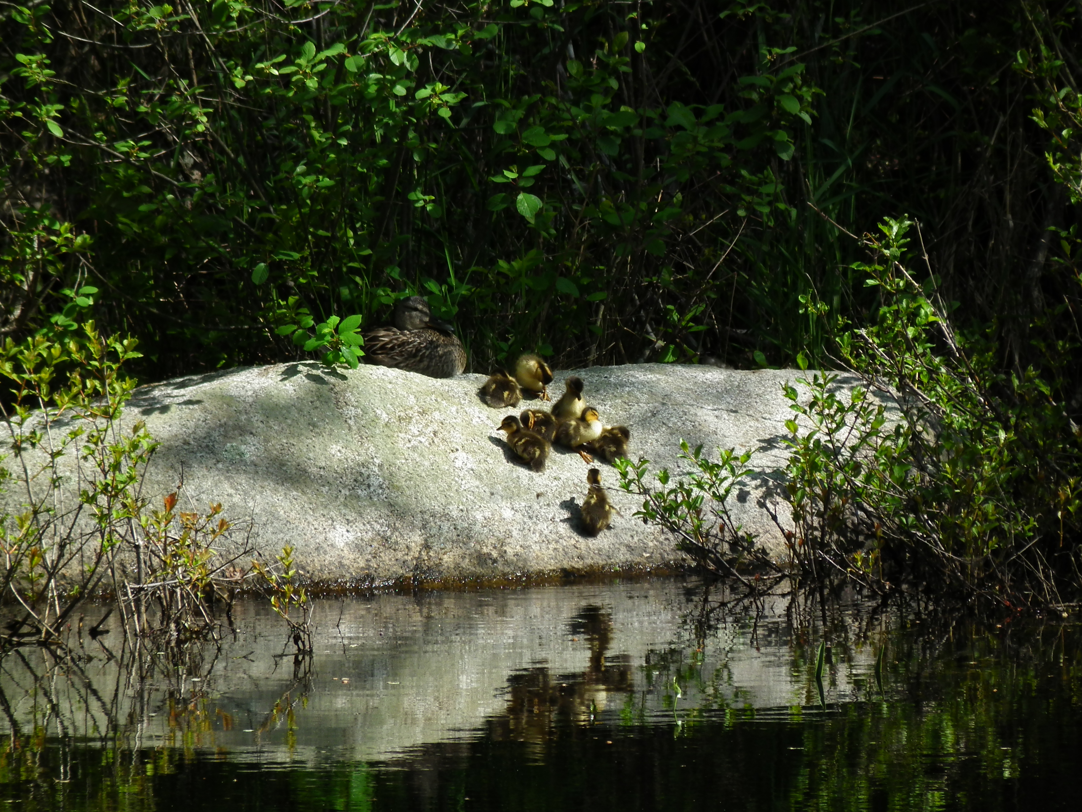 Every year we have a family of Mallard Ducks and Ducklings. Last year it was the first year since we’ve been here that any of the ducklings have survived. Foxes, Minx’s and other predators have had their way with them. The two survivors have returned. They are both males. I’m sure next year they will bring back their spouses. I’ll keep you updated. Here are some photos of the ducklings there are 7 or 8 so far.