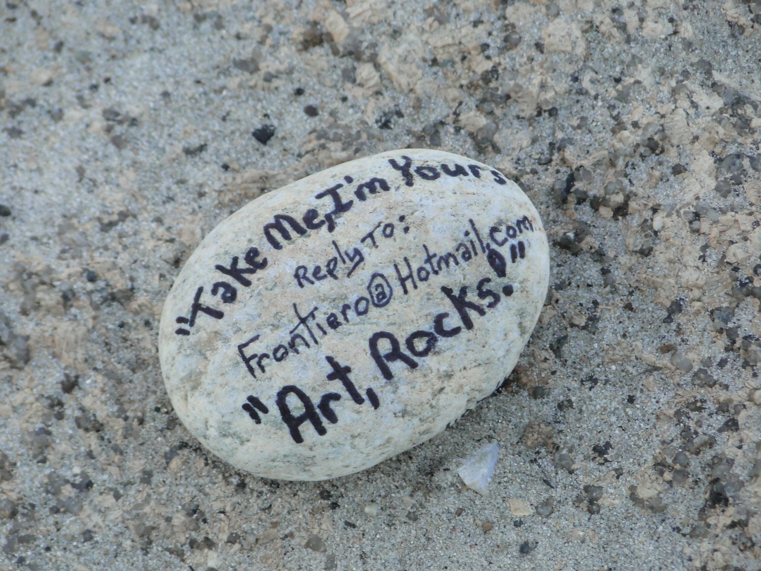 It’s great to watch her working on the beaches she’s enjoyed her whole life. When she came home yesterday she hadn’t heard about your Art Rock, but she was intrigued ! Beach goers seem to always ask her interesting questions (at GHB, little kids keep asking her whether they can “bring the crabs home” … she tells them they would be happier if left in the creek.).