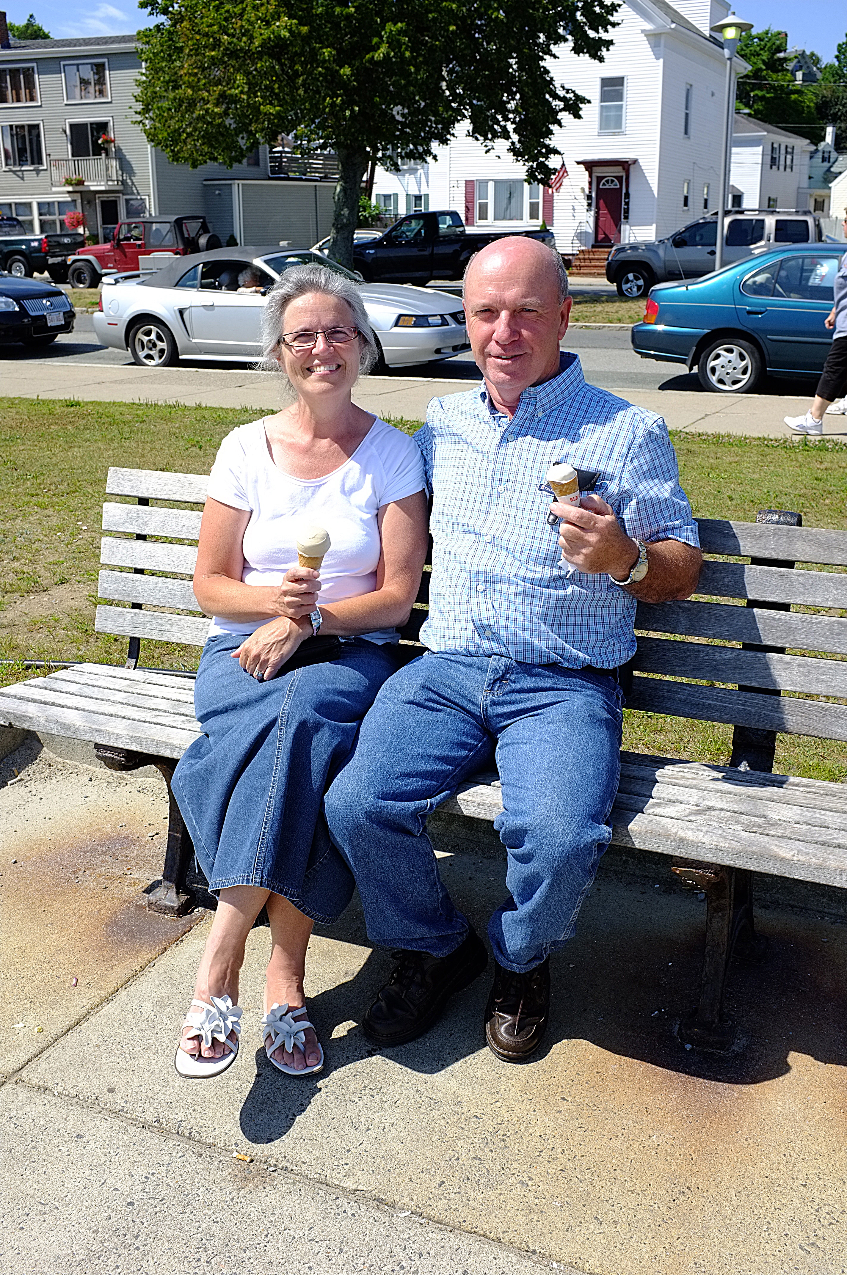 Sandy and Steve hail from New Brunswick, although Sandy grew up in Gloucester. They visit here frequently and certainly seemed to enjoy the the sun, ice cream, and view of the outer harbor on a perfect summer day.