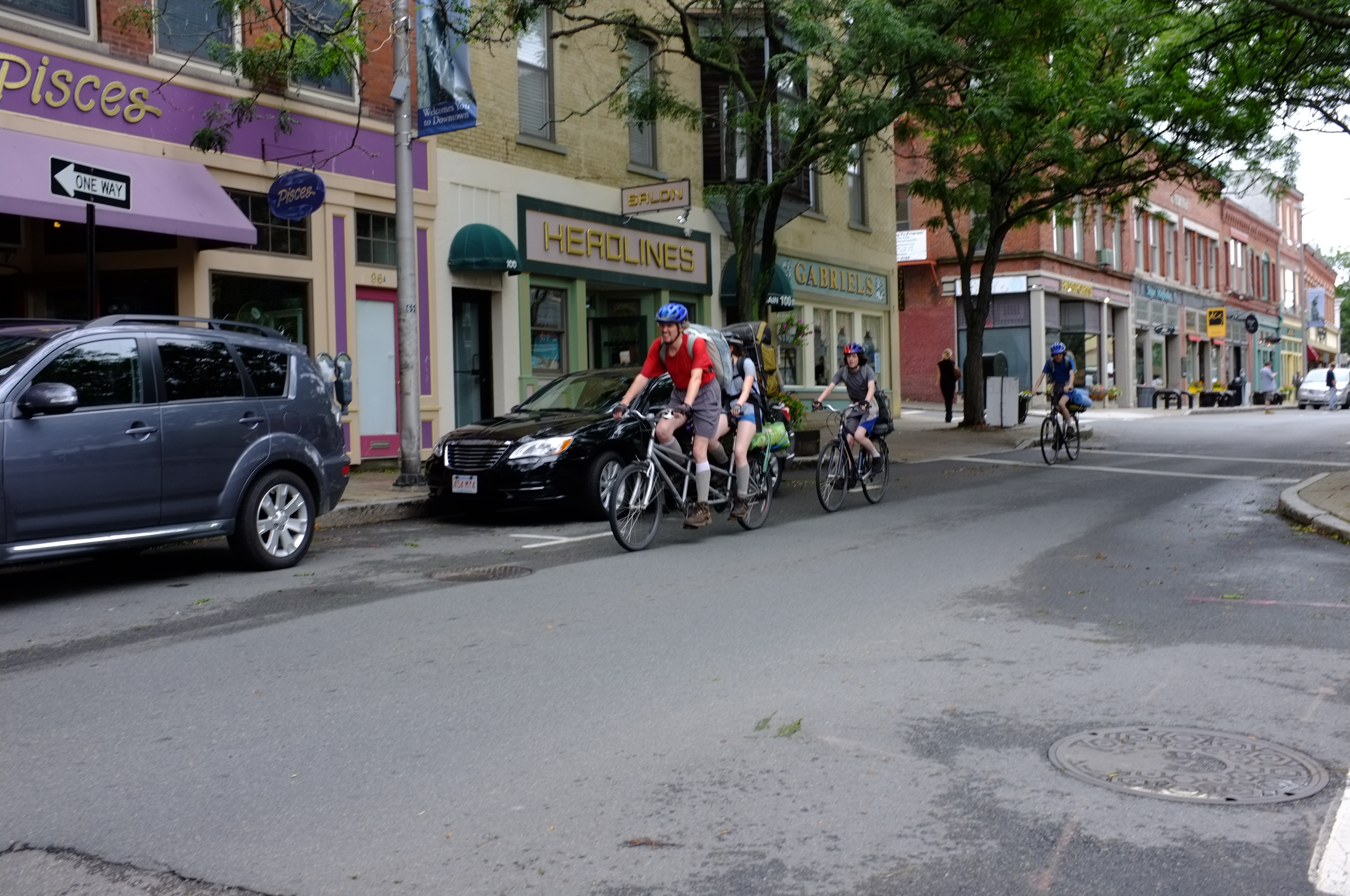 Step 2: I wanted to focus attention on the tandem bike riders, so I made a substantial crop thereby eliminating some distracting background and enlarging the image of the bikers.