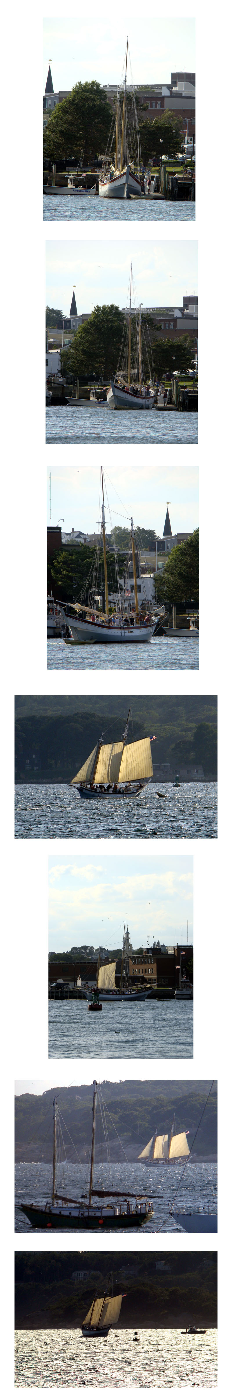 Here are some not particularly great shots of Ardelle as she pulled up to Gloucester Maritime, I think to pick someone up, then went back out and raised her sails and then headed back out of the harbor. I caught a few shots of her under sail as she passed behind the paint factory (the gates were open, so I got to scoot to the back and catch her as she passed). The light wasn’t great, but she sure does look alot prettier than when I watched her whiskey/rum plank being installed. I missed her launch, so it was really great to see her under sail for her maiden voyage.