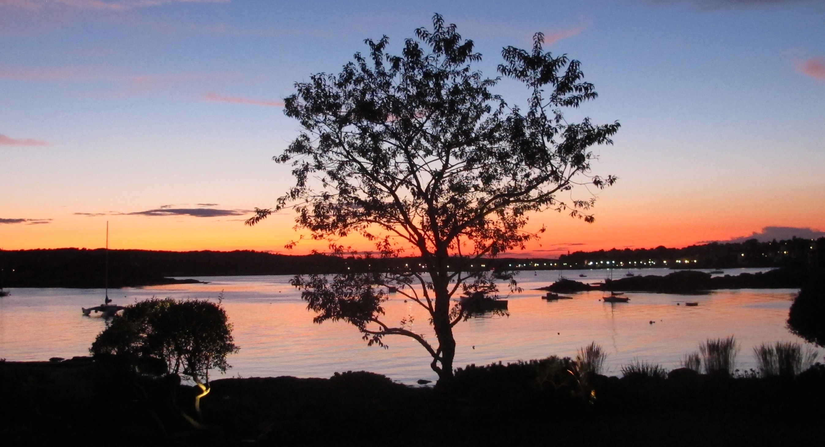 Sunset, Opunohu Bay 20" x 20" , oil by Rokhaya Waring