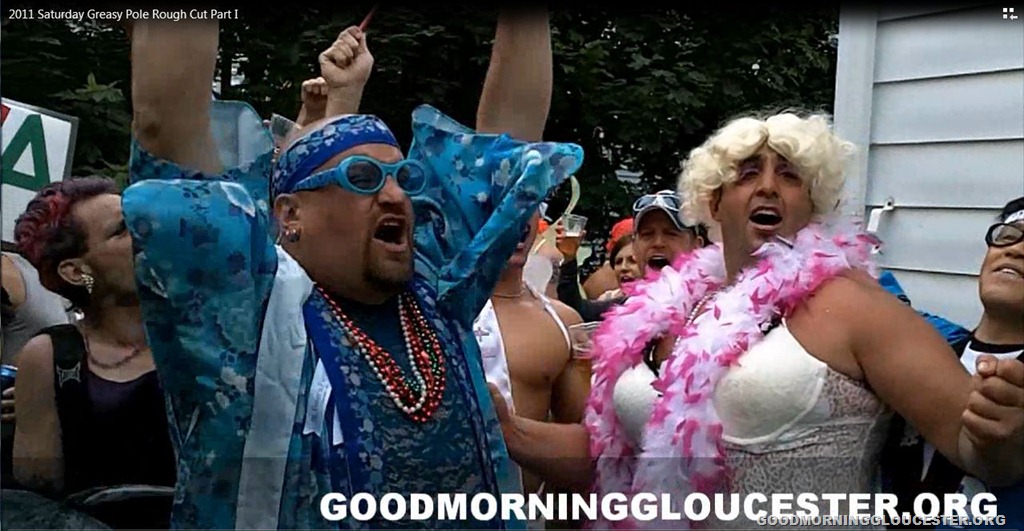 With help from my man Ed Collard, we have constructed a gargantuan screen which we will be hoisting up onto the beams in front of Lat 43 and screening Greasy Pole Videos featuring all three winning walks from the 2011 Greasy Pole, Seine Boat Races, Blue Lobster Videos 2o feet wide, St Joseph’s Novena Video, Faces of The Greasy Pole, Back Shore After The Storm Video, Sam Hartson’s “This Is Fiesta Movie.