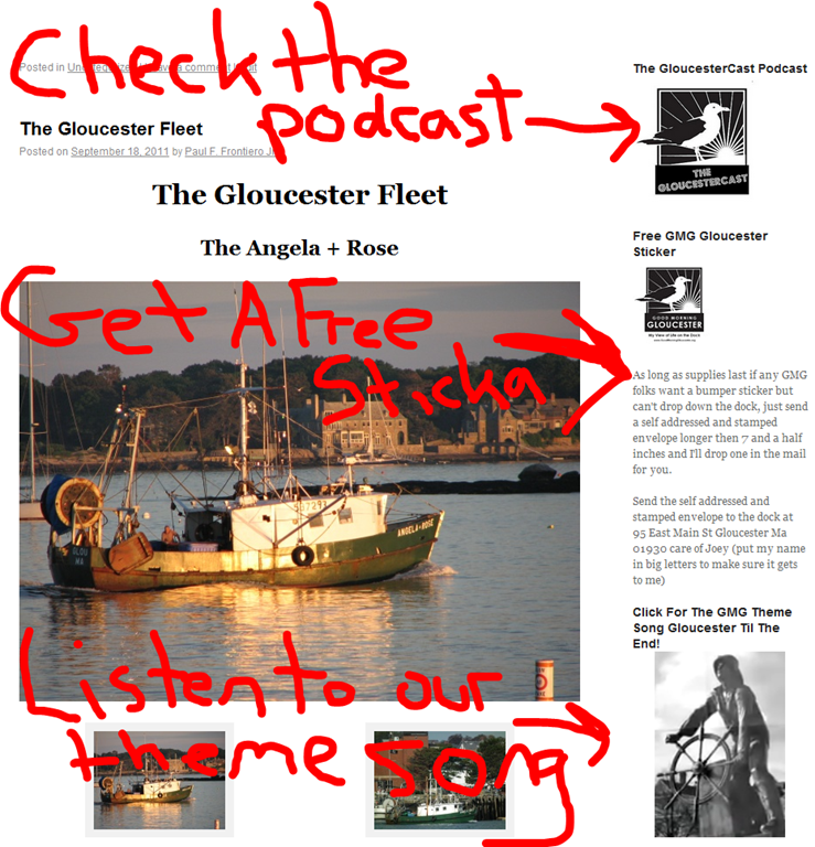 We will unveil the 25 foot screen that Ed Collard and I conceived and Ed mostly built with help from Sista Felicia and screen Sam Hartson’s “This Is Fiesta” movie- outside hoisted high up on the pilings in front of Lat 43, show footage of the blue lobsters albino lobsters, golden sea robin, Sunday Senior Seine Boat race, Friday Saturday and Sunday greasy pole footage, Monkey Balls, Craig Kimberly’s Fiesta Videos, Faces Of The Fishermen From EJ, Gloucester’s Finast Kind Calendar, and much much more. The Outdoor café setup in the parking area in front of Lat 43 will be incredibly set up Lat 43 will be practically giving the food away and there will be adult beverage service- NOT TO BE MISSED!!!!!