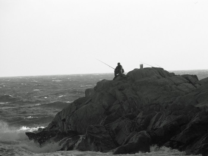 Alone on a Rock on Shore Road getting in some fishing