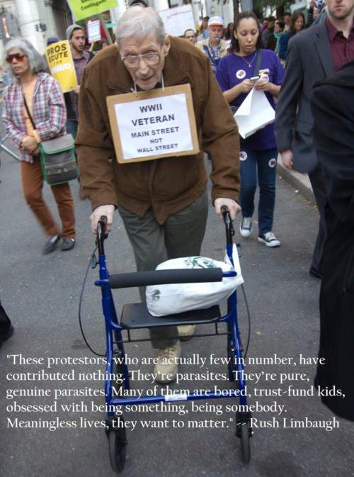 3. I have participated in peaceful protests in the past that were amazing and peaceful and powerful filled with art, conversation, debate, and music. Thousands and thousand moving en mass with a joint idea of what was wrong and what needed to end. We went to the hotel after and would watch the news underreport the number of participants, focus on the 5 anarchists that used it as an excuse to say stupid things and knock over a few newspaper holders, and spend all of a few seconds to espouse the purpose and voices. I have nothing but respect for the people protesting (many of them unemployed by the current economic climate) that are sacrificing their comfort and potential police record to bring attention to these issues and pressure the politicians. We have a close friend that was arrested. This movement is in 50+ states. It is not the refuse of the world gathered to freeload. They are organized and purposeful and diverse. http://2.bp.blogspot.com/-B3UdeOdjoJo/TpfIW8DQSjI/AAAAAAAAAsg/p0sMcO-DRBs/s1600/OWSphoto.jpg