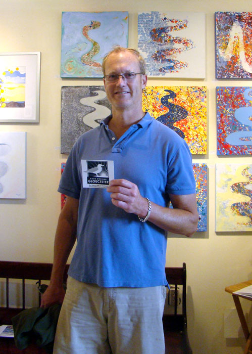 Marcia and Al Murray from Peotone, IL (about 50 miles from Chicago) stopped in at Khan Studio and the Good Morning Gloucester Gallery on their last day in Gloucester to get a Did You Know? Book and a sticker.  Marcia’s mom was from Gloucester and she spent many summers here growing up.  She comes back every year, and Al has been coming with her for the past 19 years.  They both love it here and are devoted FOB’s.