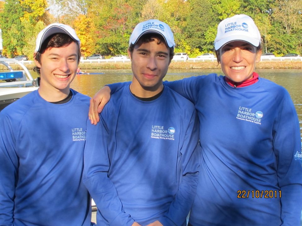 Little Harbor Boathouse rowers shine in 37th annual Earnestine Bayer Race on the Charles on Sunday, October 24. Pictured L to R: Congratulations to Little Harbor Boathouse Teen Rowing Program Rowers Kyle Edmonds and Joe Ciolino, first place finishers in the Men’s Doubles (27:08); Developmental Rowing Program rower Cristina Campa, 2nd place in the Women’s 40-49 (29:54) and LHB member, Eileen Perry, (not pictured) 1st place finish in the Women’s 50-59 class (28:31)! Way to row all!