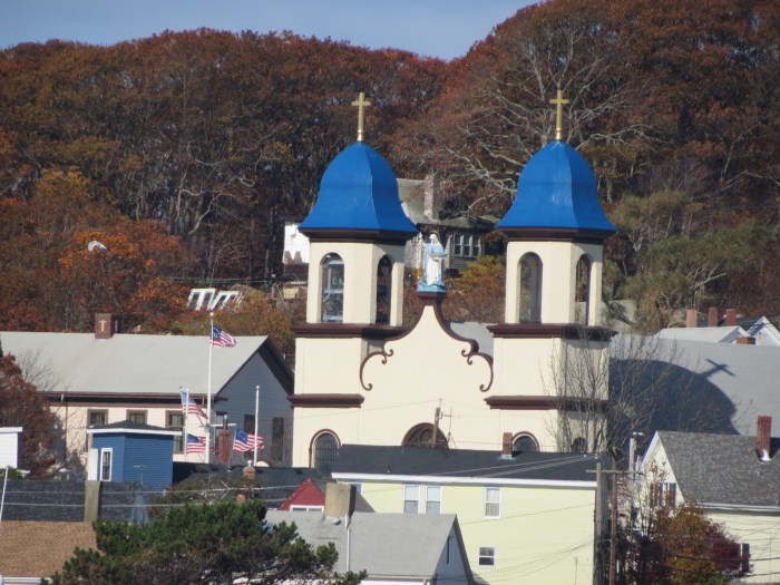 Originally dedicated in 1893, Our Lady of Good Voyage was built for the Portuguese community in Gloucester, after they petitioned the Roman Catholic Church for the establishment of a place to worship dedicated to the Madonna. Large numbers of Portuguese immigrants migrated from the rugged Azores Islands and began settling around Gloucester’s Inner Harbor as early as 1829 to work in the city’s active fishing industry. By 1888, approximately 200 Portuguese families lived in Gloucester making it the largest Portuguese colony on the East Coast. According to the story of Our Lady of Good Voyage, a stranded fisherman in the rough Atlantic Ocean broke one of his oars and could not return to his homeport. He sought help from the Madonna and the sea miraculously calmed allowing him to reach port safely. click below for More: