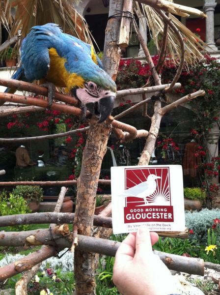 I’m not sure if you got to use this one, but I just loved the way this Macauw deep in the Sacred Valley wanted to chew up the GMG sticker! He personally asked me to get noticed on your Blog in Gloucester, so I had to send this in again. He’s just so colorful, I thought he’d fit in right next to Homie. I am also sending (in another email) the last GMG shot from Machhu Picchu since after that, I left my sticker with Pedro our guide!