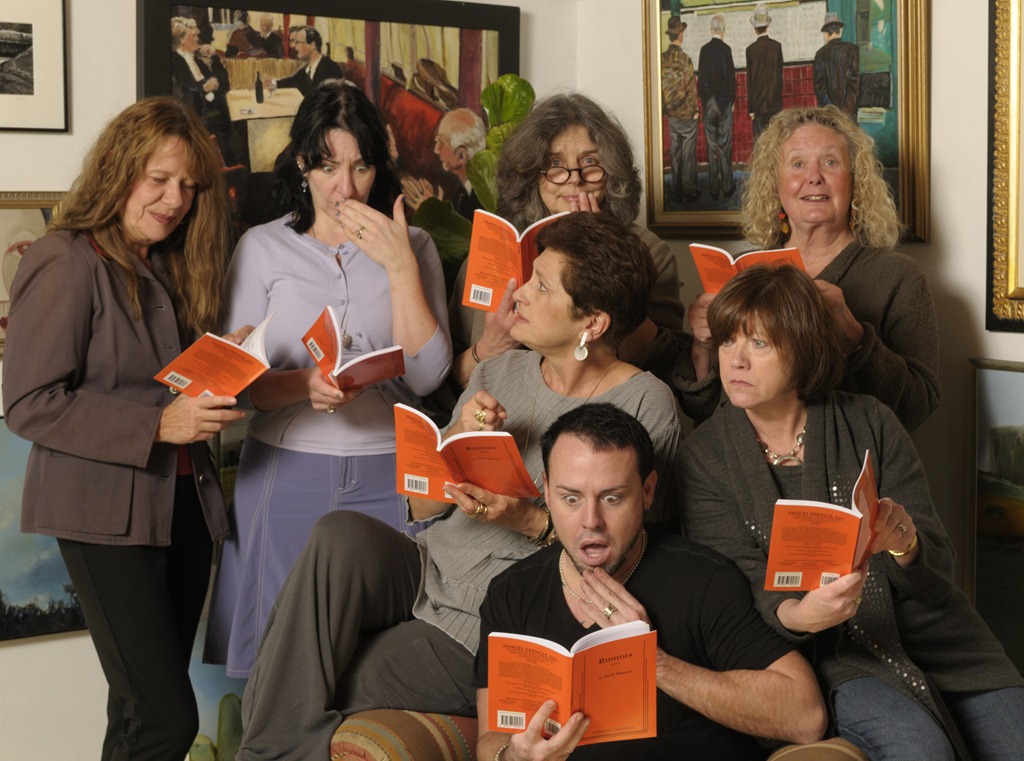 Caption: (left to right) High society, high crime, high comedy, gunshots, a dinner party, no cook, no host, you are cordially invited to AUDITION! Behind the Scenes—(clockwise from left) CAT Collaborative’s Heidi Redston-Rideout (costumes), Lauren Suchecki (actor), Pat Maloney-Brown (director “Rumors”), Mary Lou Nye (publicity), Pia Nadel (sets), Pauline Miceli (director “Sylvia”), and Joey Arsenault (actor/social media) meet to kick-off the planning of Neil Simon’s rollicking farce, “Rumors.”