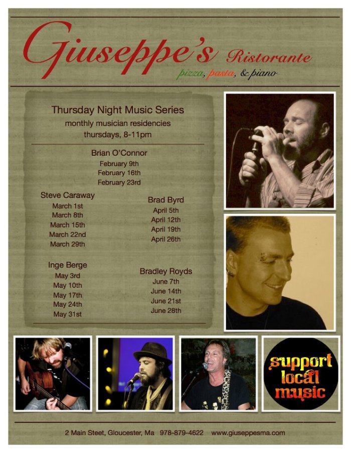Tonight is Dueling Pianos with Joe and Ricky! 8:30-close, dueling pianos has been moved to the first Friday of every month!….our Thursday Night Music Series begins next Thursday, February 9th…a great lineup of musicians taking up residency at Giuseppe’s each month!