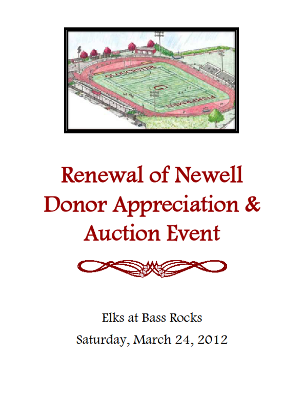 Here is a complete auction booklet for Saturday’s Event to Benefit Newell Stadium at the Elks at Bass Rocks.