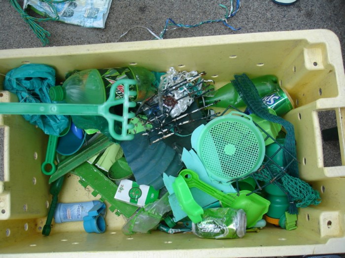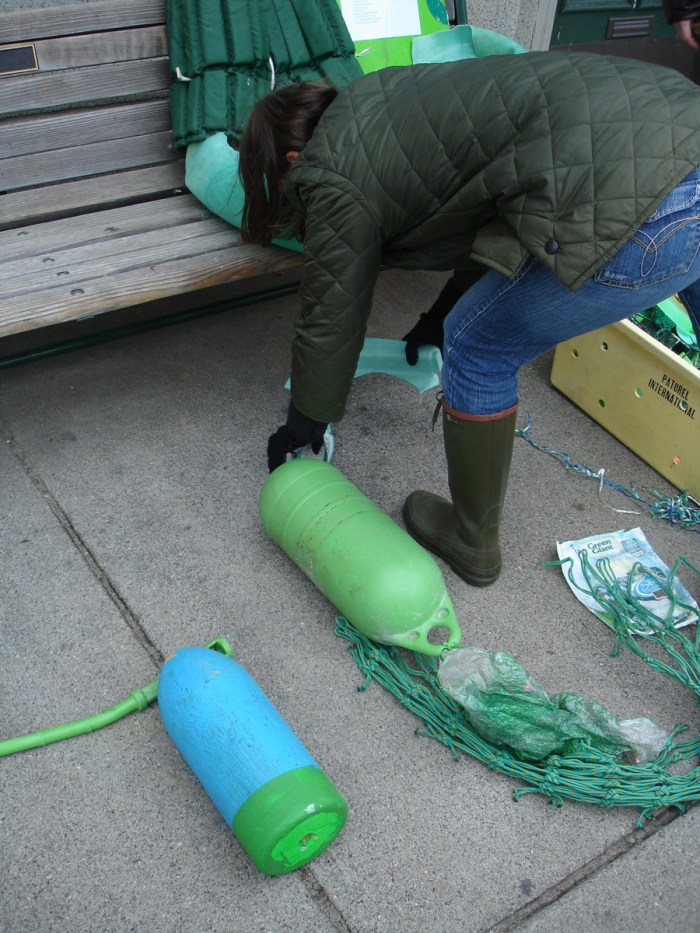 Toad Hall Bookstore is celebrating their 40th birthday this year with several special events, one of which took place on Earth Day, April 22nd. As many of you know, Toad Hall’s profits go toward supporting environmental causes, so in keeping with that theme, sculptor Nina Samoiloff brought 40 pieces of (GREEN!) beach trash scavenged from Rockport’s beaches to create a sculpture in a live event in front of the store on Earth Day. And don’t say Rockport isn’t a wild and crazy place for street art, because just like in the big cities, the cops came by and made her move along. Vive les arts! Vive Toad Hall Bookstore!
