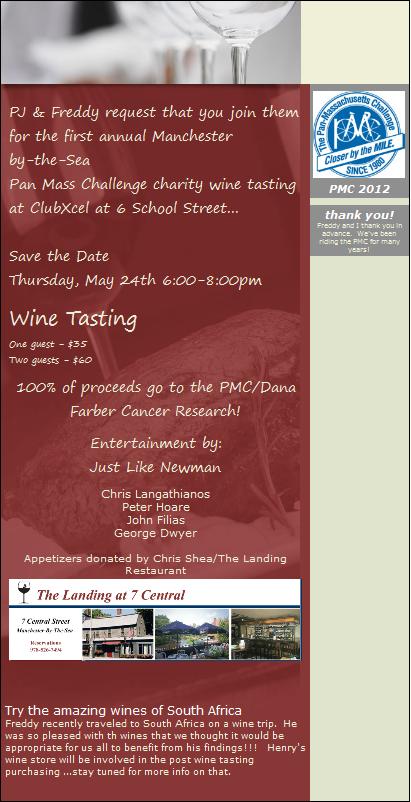 Save the date~Pan-Mass Challenge on Thursday, May 24th from 6 to 8pm~Entertainment by Just Like Newman~All are welcome!