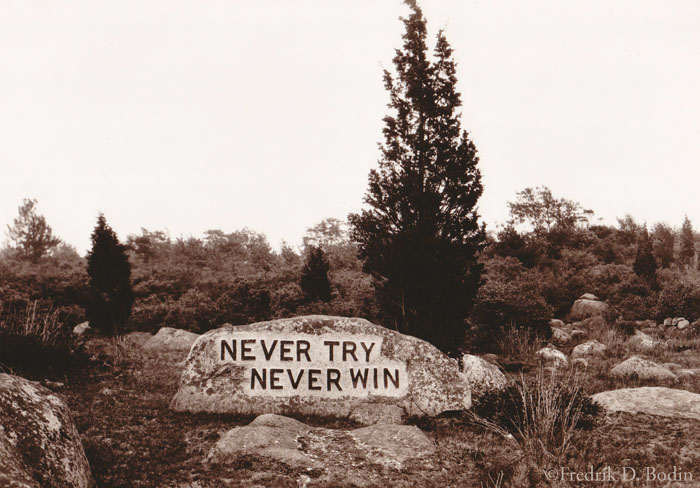I was walking with my spouse in Dogtown this past weekend and was telling her about this stone, but was paraphrasing from the guide book – I quoted it as “Never Try, Never Fail” which is also true, but not quite as uplifting a perspective. I guess I wasn’t feeling particularly ambitious that day!