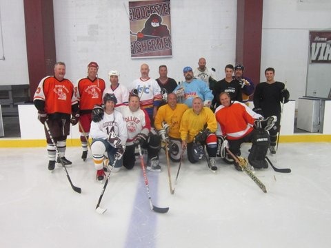 This event brought together those who knew Aran, a decorated officer with the Gloucester Police Department, having skated with and against him during his lifelong hockey career – from youth hockey, through GHS and various teams in the Gloucester Industrial Hockey League, summer leagues, on the ponds, pick-up games, etc. – and friends of his friends. Some of the guys who skated had the distinct honor of also being coached by him. Additionally, we had a strong, albeit small (only 2 this year), contingent of women hockey players.