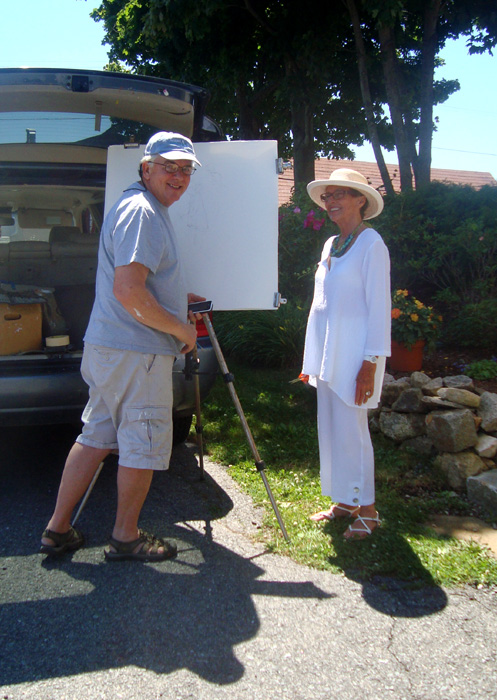 Artist, Paul George has returned to Rocky Neck. He and Kate Morse are now located at 77 Rocky Neck Ave. in the galleries previously occupied by Bernie Gerstner and most recently, Alma McLaughlin. This photo is of Paul sketching a painting of Alma, which I am looking forward to seeing.