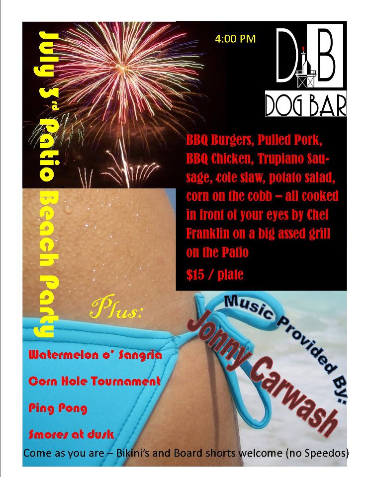Skip the fist fight over a parade parking spot, schlepping appetizers down to eat out of the back of your car and the long line for the jiffy john and party with us at the Dog Bar – $15 BBQ, Jonny Carwash, kid friendly atmosphere, plus beer battleship, corn hole, ladder ball, and tap the sangria watermelon!
