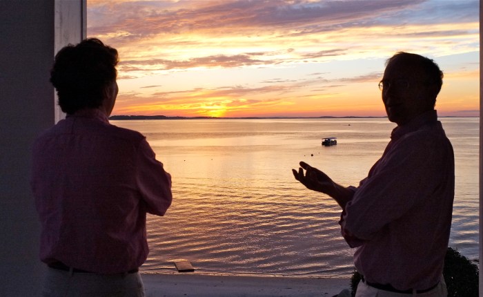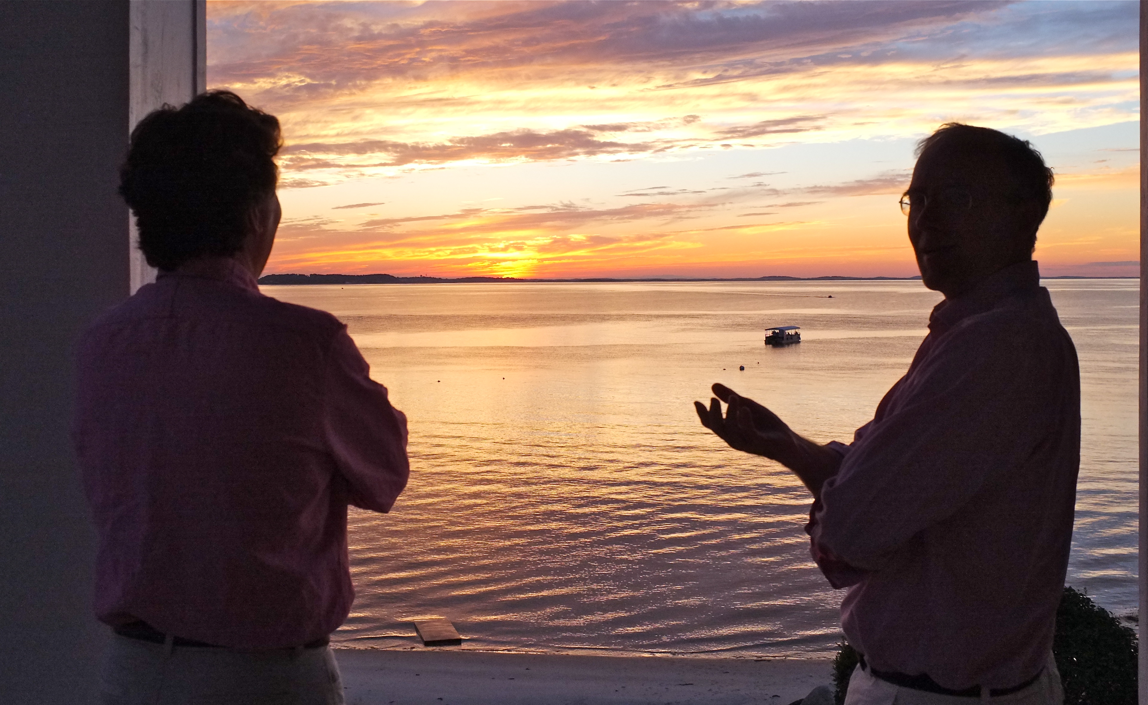 Last night we had a beautiful dinner at the home of one of our dearest friends, the Gale Family. Mom Kristina and daughter Sarah prepared a gorgeous dinner of salmon poached with a medley of vegetables, in parchment paper. I was too busy having fun and socializing and wish I had taken a photo of the salmon. We had sunset dessert on their west-facing porch, with its amazing views of Lighthouse Beach and Ipswich Bay.
