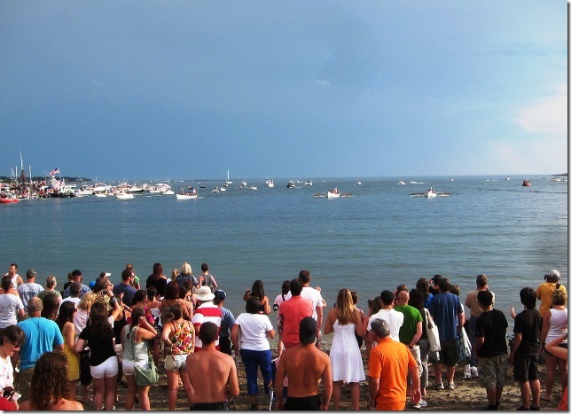 enthusiastic crowd cheered on the Nina, Pinta, and the Santa Maria at