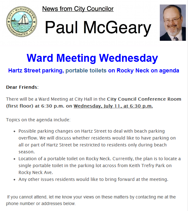 News From City Councilor Paul McGeary