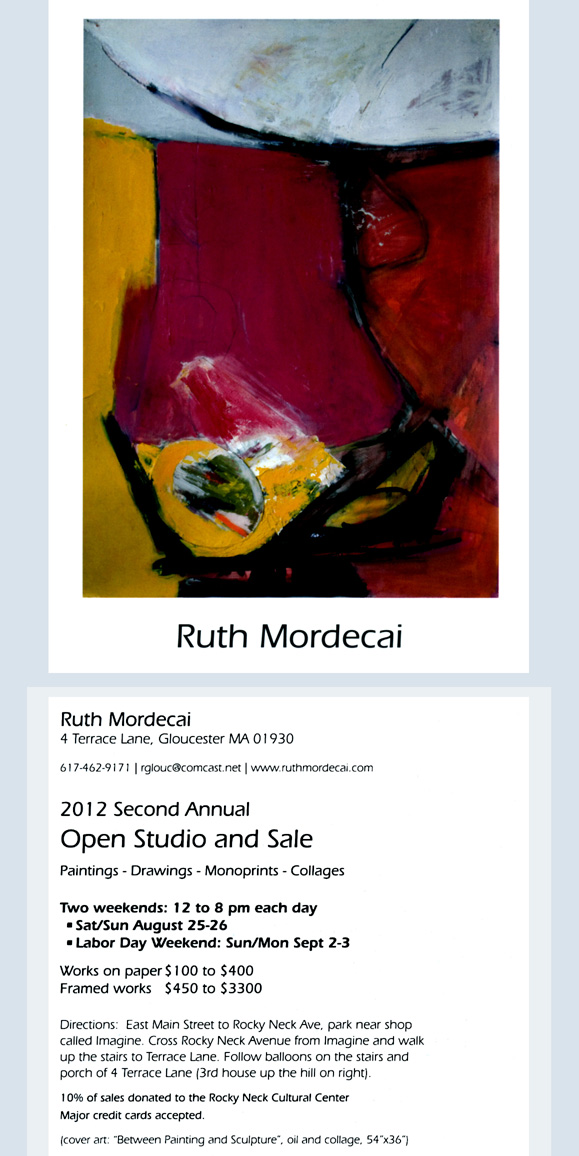Ruth Mordecai Open Studio This Weekend Noon to 8:00pm