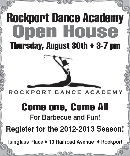I wanted to inform your many readers that Rockport Dance Academy’s Open House is Thursday 3pm at Isinglass Place 13 Railroad Avenue in Rockport. Come see the brand new studio, enjoy a BBQ and support local businesses!