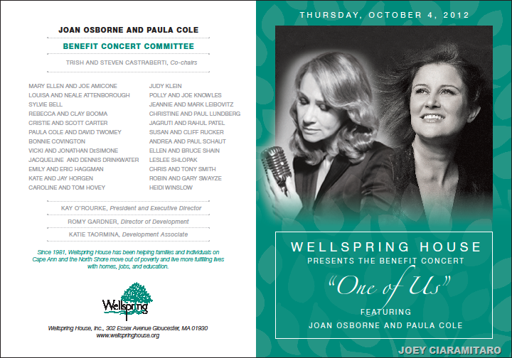 Don’t miss your chance to be part of the excitement! Celebrate at Wellspring’s 2nd Annual Benefit Concert on October 4th at Rockport’s Shalin Liu Performance Center. The concert will feature Grammy Award winners Joan Osborne and Paula Cole. ![]()