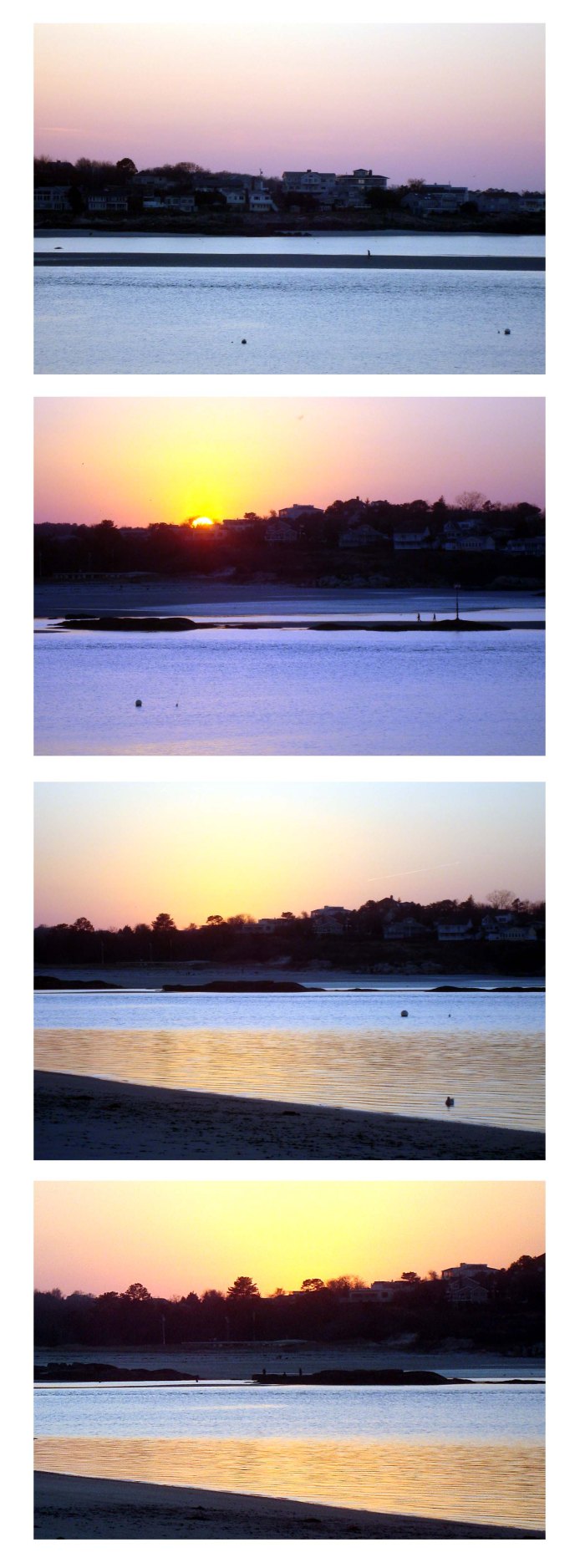 Three people went for a walk out on the sandbar off Wingaersheek Beach Sunday afternoon and ended up going for an unexpected swim. It was a beautiful day and I was out showing the village to visiting FOB’s Linda and Rob Castagna from Milford, NJ when we came across this scene. In the first photo, you can see the most distracted of the three running full speed to catch up with his two friends who were nearly back to the beach (2nd photo). In the 3rd photo you can see that the beginning of the sandbar is now under water and in the 4th photo, well – they have no choice but to wade in to shore. Fortunately is was a balmy November day and the water hasn’t had a chance to get too cold.