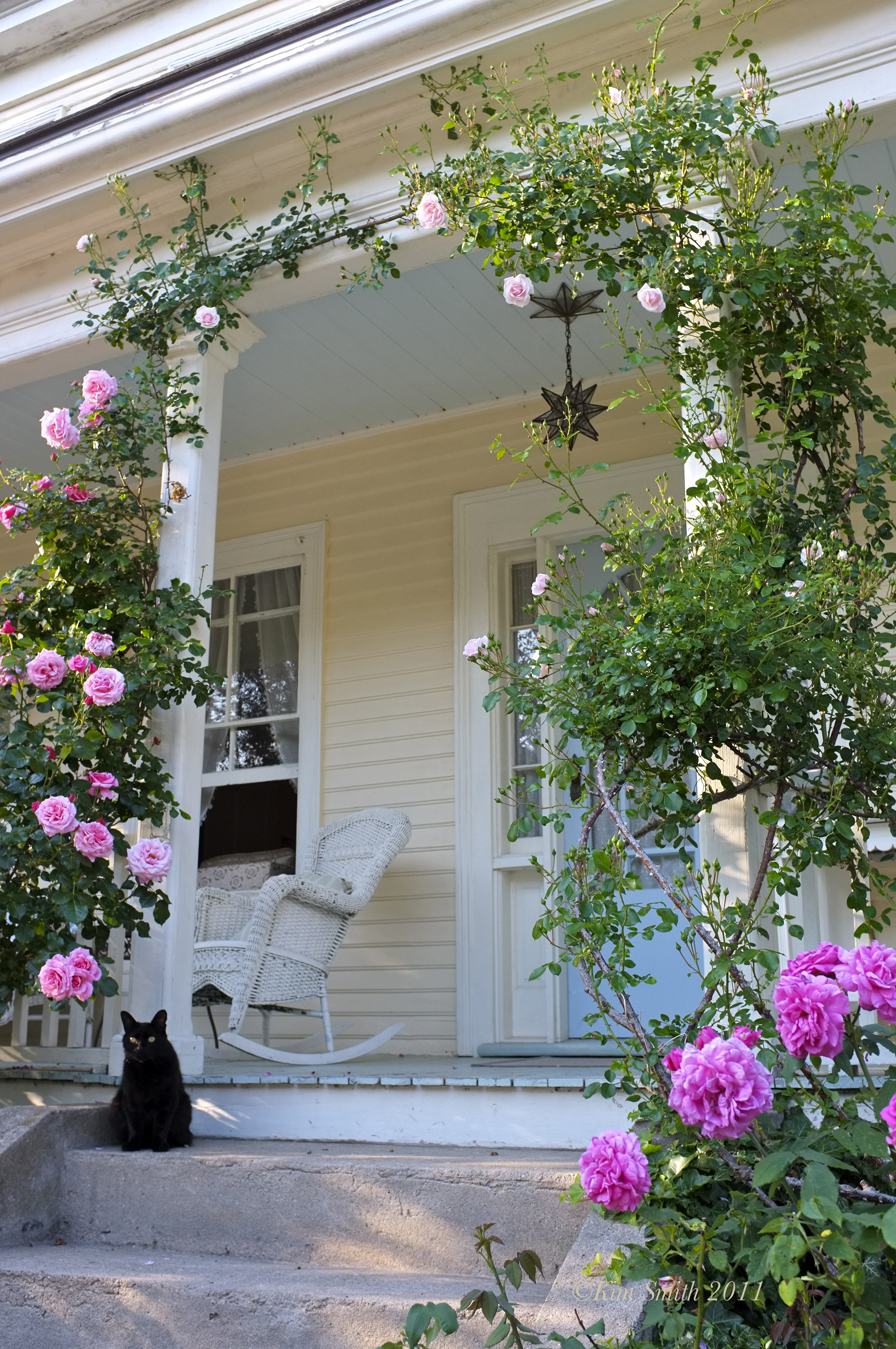 Hello Saint707–I don’t have the same view in all four seasons as the Blizzicane Nemo wintry porch view that was posted this morning, but found these from June 2011–same porch, same rose bushes. As I am not planning to venture further than my porch this afternoon, I thought we may all benefit from a glimpse today of spring yet to come.