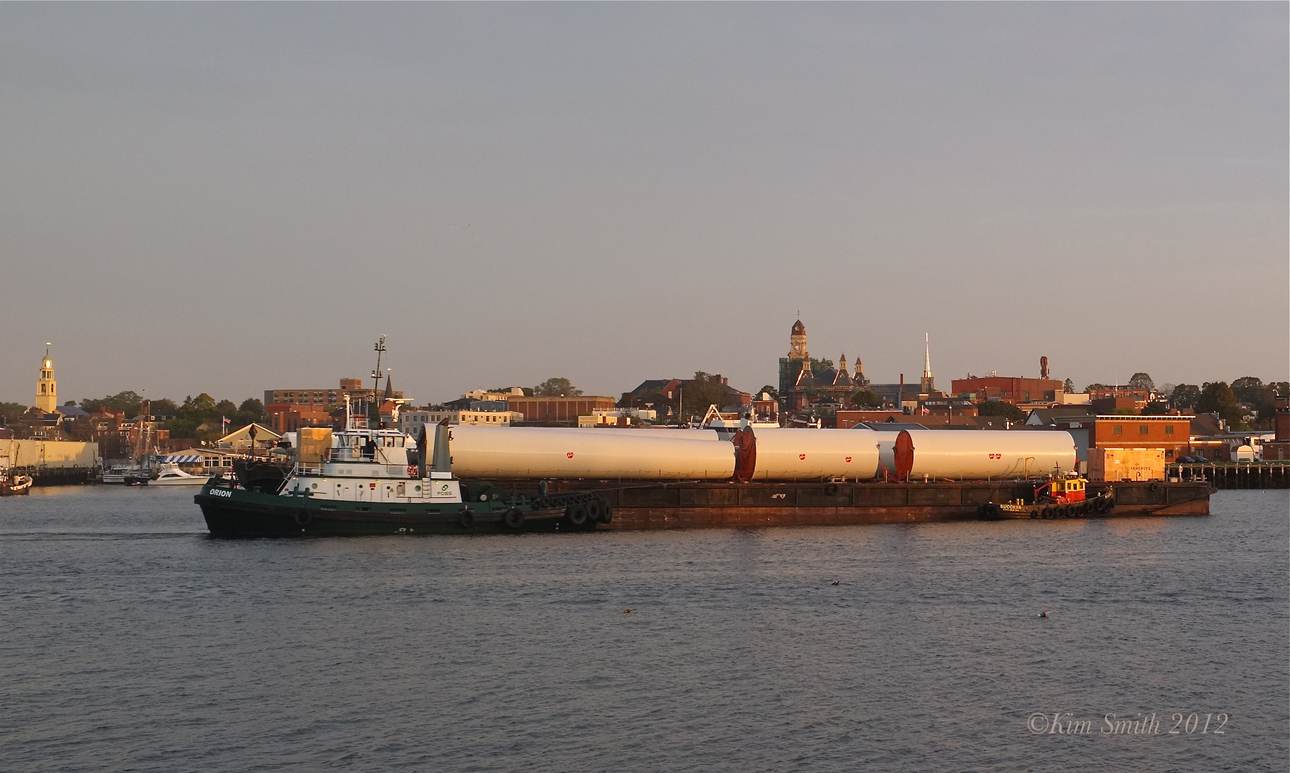 I thought everyone would like to know that a photo of mine, Gloucester’s First Wind Turbine, has been licensed for a million-run children’s textbook on wind farming. I think its pretty exciting that our turbine and Gloucester Harbor will be featured not only in one million textbooks, but in the electronic version of the book as well. Upon publication, the publisher is sending a copy of the book and I plan to donate it to the Sawyer Free Library. This photo was shot at daybreak last October while filming the barge transporting the wind turbine through Gloucester Harbor.