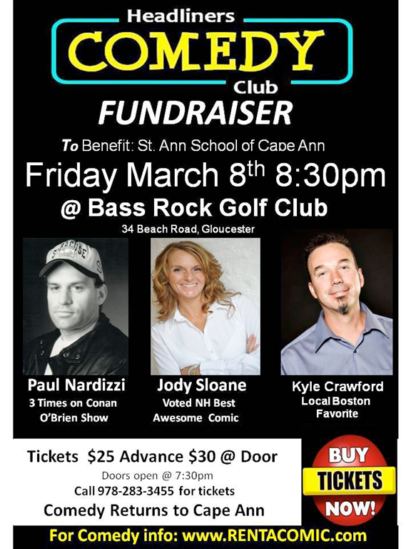 Looking for a fun night out? We are bringing 3 Very funny comedians to the beautiful Bass Rocks Golf Club, Friday, March 8th at 7:30:
