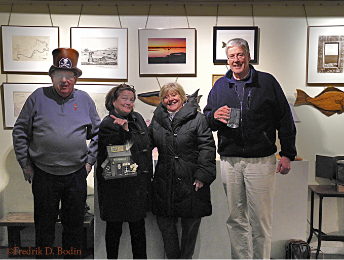 Left to Right: Uncle Sid Tracy (Moran Tugboat Company), Emma Tracy, Karen Tracy, and Theo Tracy. Lacking a GMG sticker, I gave Sid my pirate patch, but Theo is holding a GMG mug that was left here after our GMG/Bodin holiday party (come get it if it’s yours). Emma and her husband are residing at Mother Ann Cottage on Eastern Point for the winter, which is the outermost house next to the Coast Guard Station. Her comment to me about living there: "Magnificent and dramatic views of the ocean, but windy and very cold." The weather will improve for us all, and I hope to see the Tracy Pirates at our next gallery event. They’re definitely a fun crew.