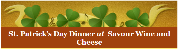 Just a reminder to sign up for the St. Patrick’s Day dinner, hosted at Savour Wine and Cheese, and expertly cooked by Chef Matt Beach. We have 23 people currently signed up, but have room for 17 more. It will be friendly and informal, with everyone sitting at community tables. Come alone, in couples, or in groups. Everyone is welcome! We will need our final count by Thursday, March 14. Justemail Kathleen to sign up!